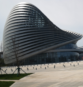 Complex curved glass: A curved glass product made by heating flat glass to a softening temperature and bending. The profile of the glass forms curved appearance with two or more Radius, or the same radius is bent in two or more axes. Compared to single curved profile and single radius curved glass, the equipment structure, process complexity, and dimensional accuracy are quite high request for producing complex curved glass. Such products typically have two variations: different axial and coaxial with different Radius. Complex curved glass is mostly tempered glass, which can ensure variable shapes, as well as high strength and safety; it can achieve multi-colour appearance, sound proof, heat insulation, and noise reduction functions after Low-E coating, laminated, or IGU process, is a new type of building curtain wall glass.
