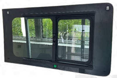 大玻璃中間挖孔,小窗安裝在大玻璃的孔內,小窗可延玻璃橫向作推拉運動,關閉時小窗與大玻璃外觀面齊平。除了齊平推拉窗,公司窗框產品還包括:推拉窗、多窗口滑動窗框、逃生窗、客車車窗、隱藏滑動式車窗、校車窗框、UTV后檔對開推拉窗總成、全地形車窗等